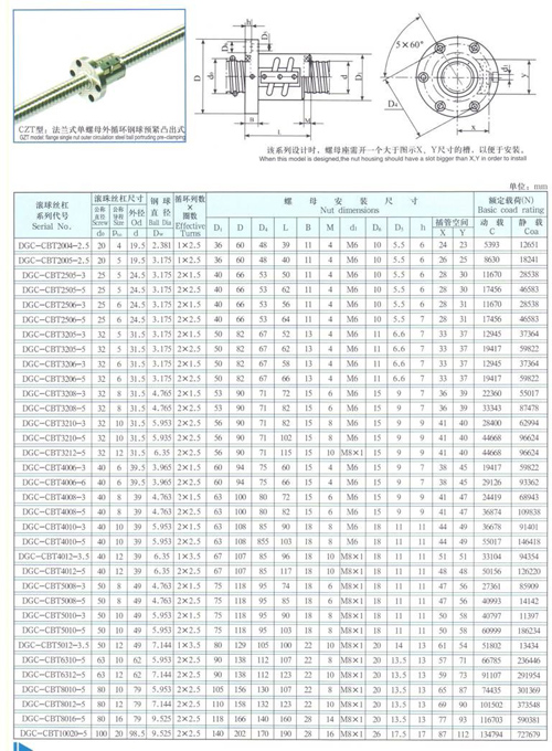 法蘭式單螺母外循環鋼球預緊凸出式